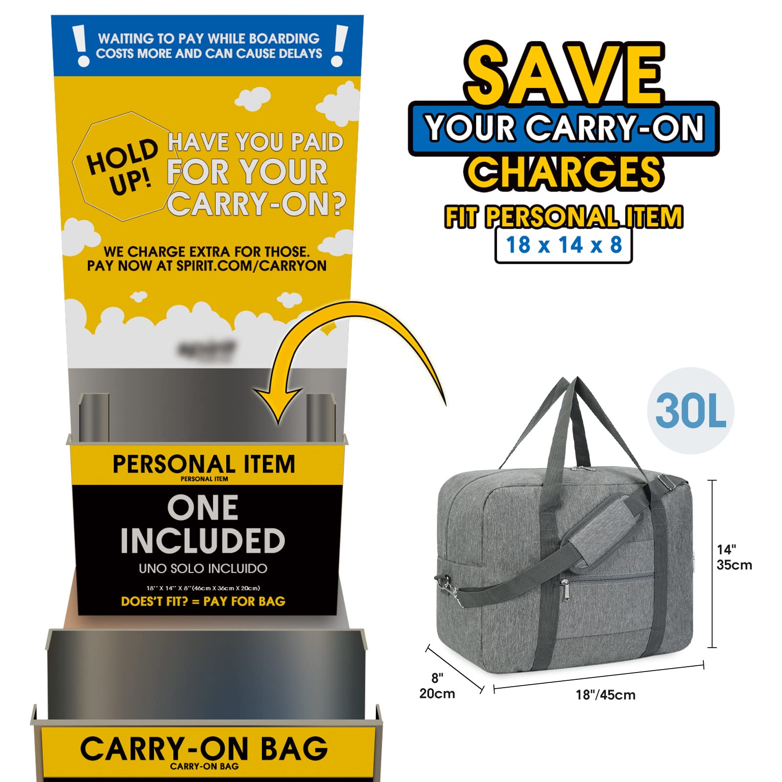 Measuring at 22x14x9 inches, the Narwey Carry on Luggage is the perfect size to fit within most airline's carry on size restrictions. Say goodbye to the hassle of checking in your luggage and save time and money by taking this bag with you on board.