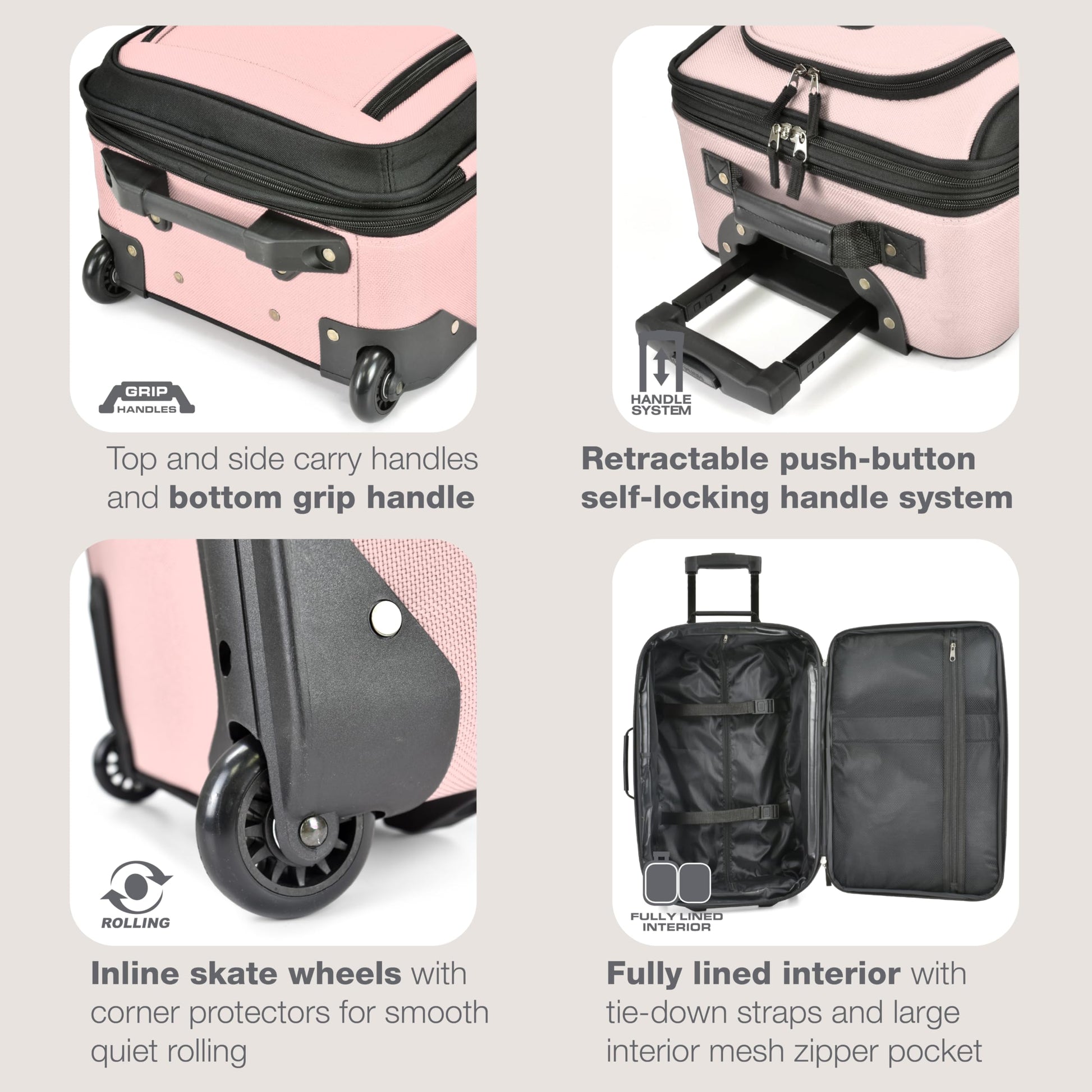 Equipped with 2 smooth-rolling wheels, navigating through busy airports or train stations is effortless. The telescoping handle ensures comfort and ease as you glide through your journey. The spacious interior features multiple compartments, enabling you to keep your items neatly arranged and easy to access.